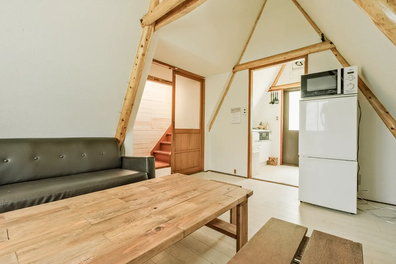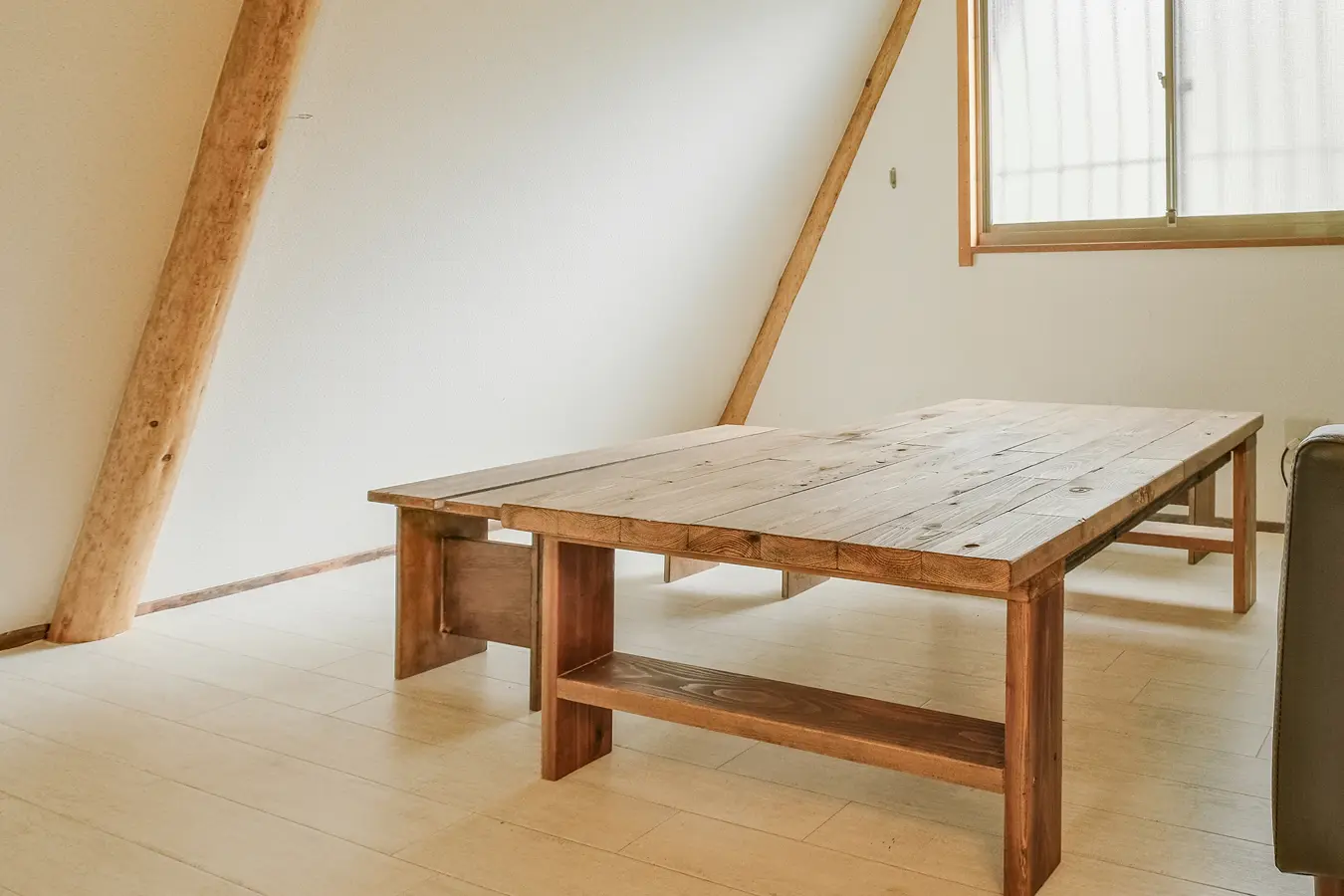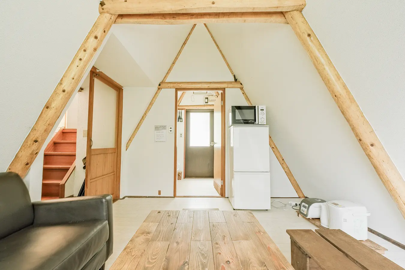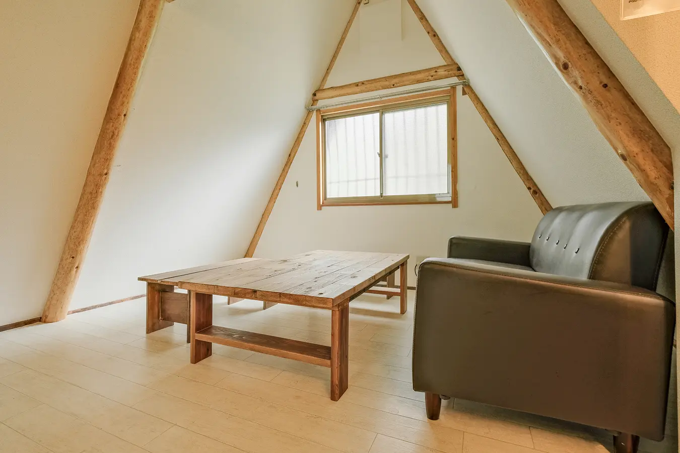 三角屋根のリビング